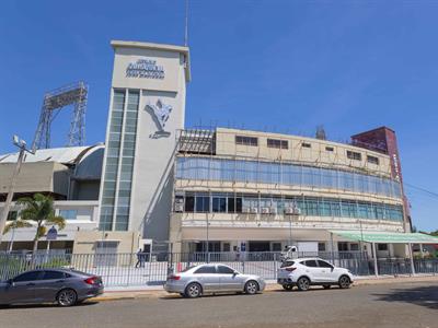 Aún falta por colocar el ya reconocido nombre: Estadio Quisqueya Juan Marichal. Y con eso, las figuras que en esa parte frontal adornan el letrero del parque.