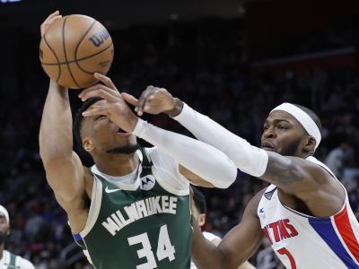 Giannis Antetokounmpo anotó 32 puntos, repartió 15 asistencias y capturó 11 rebotes para guiar el viernes a los Bucks hacia una victoria de 125-119 sobre los Pistons de Detroit, con lo que Milwaukee aseguró el quinto sitio de la Conferencia Este.