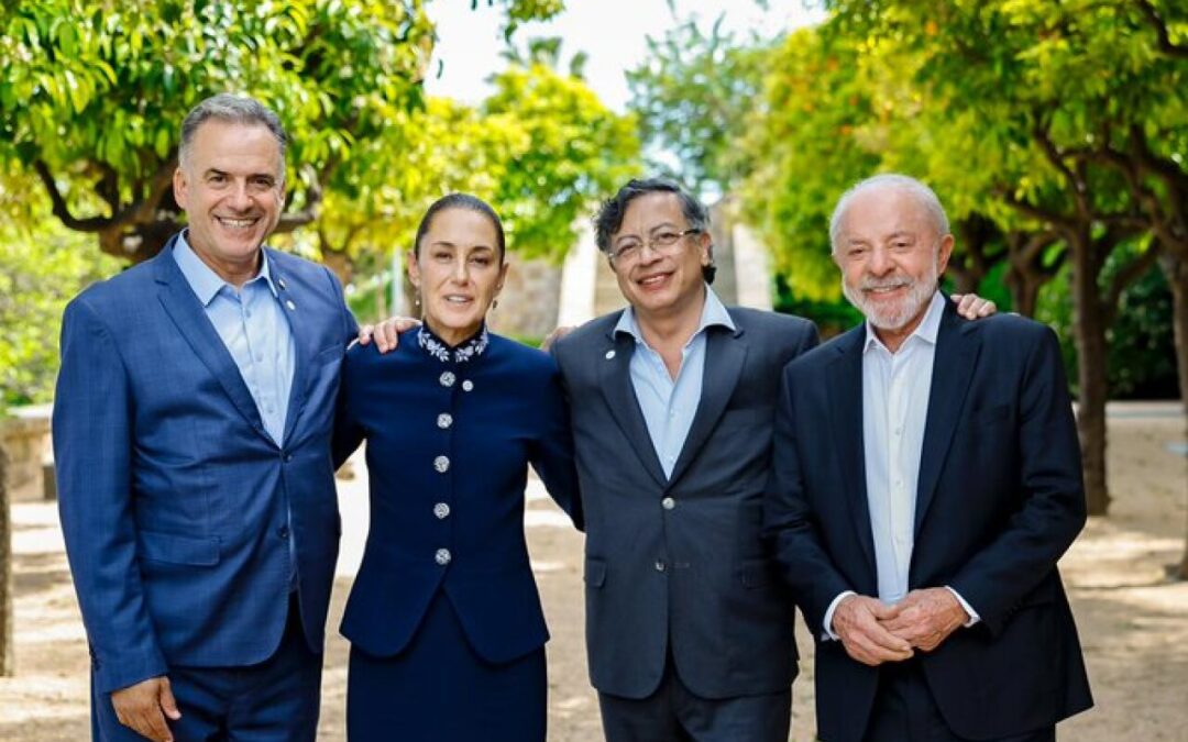 Conquista y aunque descartó la posibilidad de tener un pronto encuentro con el rey Felipe VI, apuntó que el acuerdo es que seguirán trabajando en ello. Sheinbaum también sostuvo este fin de semana encuentros con Gustavo Petro Urrego, presidente de la República de Colombia; Luiz Inácio Lula da Silva, presidente de la República Federativa del Brasil; Yamandú Orsi, presidente de la República del Uruguay; y Mia Mottley, primera ministra de Barbados. La presidenta compartió en redes una fotografía a lado de Petro, Lula y Orsi, acompañada del mensaje «¡Viva América Latina!» Lula compartió que los mandatarios continuarán dialogando sobre el futuro de la democracia y fortaleciendo lazos entre países que creen en el desarrollo con justicia social y cooperación. La Cumbre en Defensa de la Democracia fue una iniciativa lanzada por Lula Da Silva en 2024, durante la LXXIX Asamblea General de las Naciones Unidas (ONU).