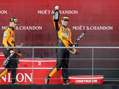 Piastri lideró un nuevo ‘doblete’ McLaren, al ganar por delante de su compañero, el inglés Lando Norris -al que ahora supera en 16 puntos-, una carrera que arrancó con un retraso de una hora y veinte minutos, a causa de la lluvia.