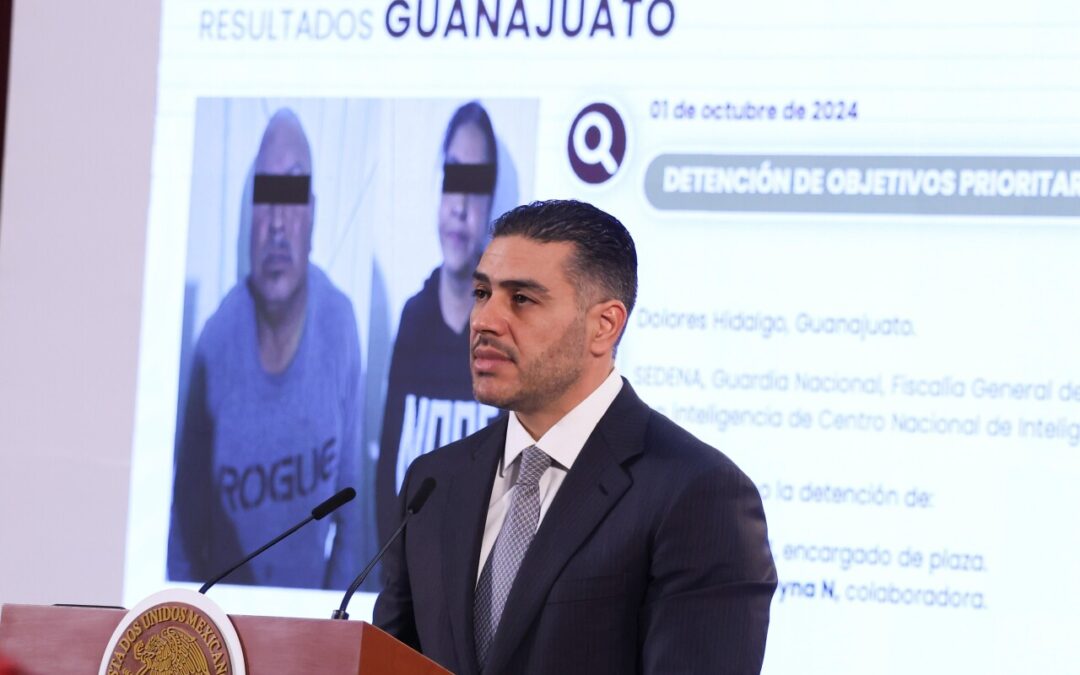 Para atender la inseguridad por la que atraviesa el país, han sido desplegados 133,000 elementos de la Guardia Nacional. “Cabe señalar que la Guardia Nacional ha contribuido de manera muy significativa en estas primeras semanas a los resultados en materia de seguridad: aseguramientos de droga, recuperación de vehículos, incautación de armas de fuego, detenciones de generadores de violencia, drogas y operaciones de rescate”, expuso. El secretario de Seguridad se refirió a algunas detenciones realizadas en las últimas cuatro semanas: se aprehendió a una persona por el tráfico de fentanilo en Baja California, al portar en su vehículo siete kilos de fentanilo y más de 40,000 pastillas de esta droga, cuyo valor en el mercado era de alrededor de 70 millones de pesos mexicanos; en Guanajuato se detuvo a dos objetivos prioritarios, quienes presuntamente operaban para un cartel; se les aseguraron 1,000 pastillas de fentanilo, 1,000 dosis de metanfetamina y un arma larga; en Guerrero fueron detenidas ocho personas y se les aseguraron ocho armas largas, cartuchos, equipo táctico; en Jalisco fue detenido Andrew “N”, quien era identificado como líder de una organización delictiva trasnacional y se le vincula con el trasiego de fentanilo y metanfetamina; así como el tráfico de armas y y la comercialización de drogas sintéticas entre México, Estados Unidos, Canadá, Ecuador y Colombia. Sobre Sinaloa, el secretario de Seguridad solo informó que en Culiacán el 10 de octubre elementos de la Fiscalía General de la República, con la Secretaría de la Defensa Nacional, catearon un inmueble en el cual aseguraron siete kilos de fentanilo, así como equipo táctico. No obstante, el secretario no se refirió a la situación de violencia que ha prevalecido en entidades como Sinaloa, Chiapas, Guerrero. Recordó que a través de reformas al artículo 21 constitucional se está en proceso de dotar a la SSP con facultades para que pueda realizar labores de investigación. “Se brindará la capacidad a la Secretaría de Seguridad para generar investigaciones que permitan coadyuvar con la Fiscalía General de la República en la investigación de delitos y cumplimento de órdenes de aprehensión, siempre bajo la conducción del Ministerio Público Federal. Además, permitirá la coordinación con las fiscalías generales de justicia de las entidades federativas y también la ley del Sistema Nacional de Investigación e Inteligencia en Materia de Seguridad Pública, el cual es un mecanismo de coordinación de las instancias de seguridad que permite la vinculación de las instituciones de seguridad con la Fiscalía General de la República, las fiscalías estatales y las policías locales”, dijo.