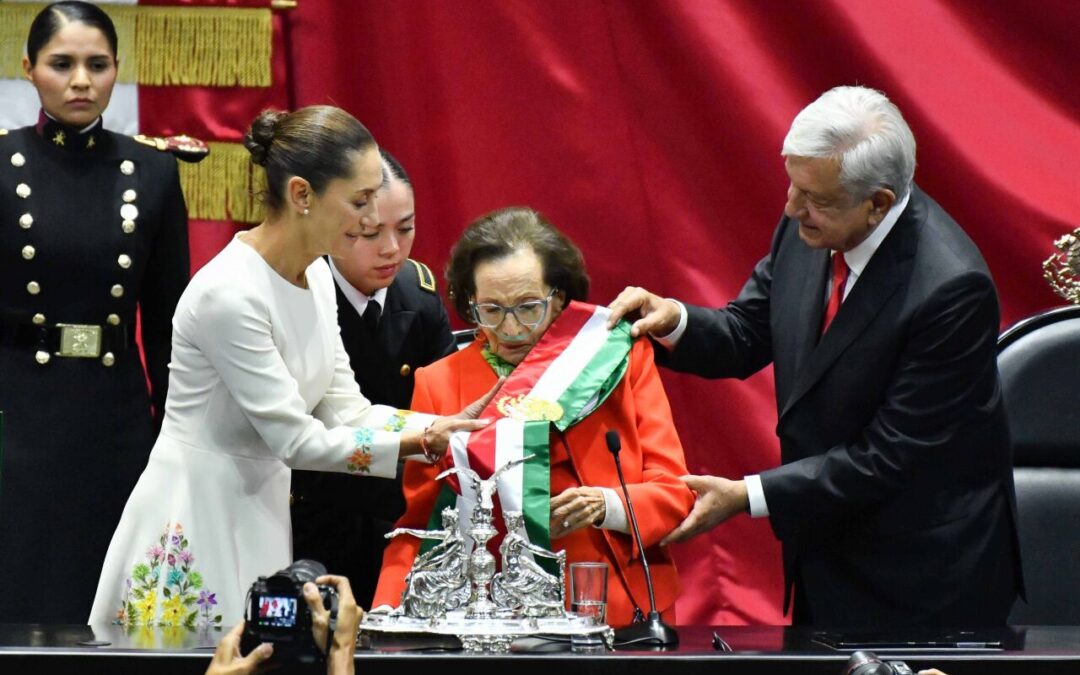 En el material audiovisual también se incluyeron imágenes del expresidente Andrés Manuel López Obrador, quien le levantó la mano y entregó la banda presidencial el 1 de octubre de 2024. La presidenta asegura que es una “ciudadana más, en este grandioso país, con una responsabilidad que le dio el pueblo”. Y aunque no menciona las presiones y amenazas del gobierno de Donald Trump, Sheinbaum afirma que se mantiene firme. “México es un país grandioso, cuando hay alguna cosa contra México, también hay que ser firmes”, dice la presidenta. Incluso, en el material se incluye un fragmento de ella cuando asegura que México es un país libre, independiente y soberano.