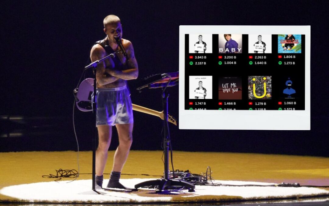 Justin Bieber posicionó 21 canciones en el Top 200 Global de Spotify tras su actuación en Coachella el fin de semana, la mayor cantidad lograda por un artista después de presentarse en el festival.