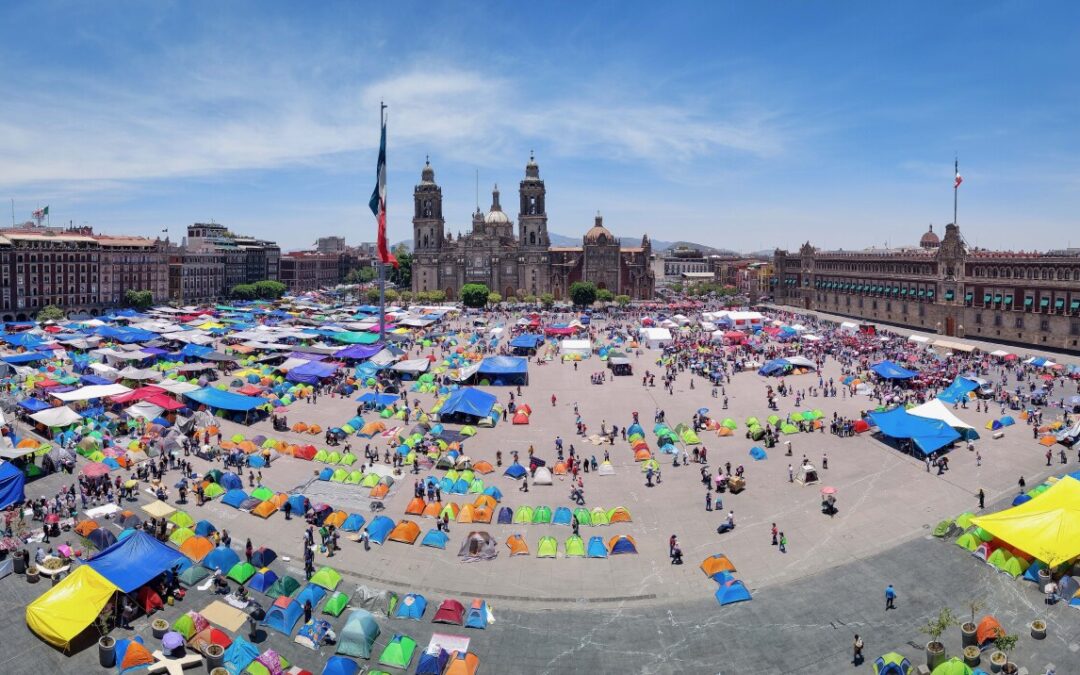 La huelga más larga de la CNTE Pero el paro nacional más extendido del sindicato inició el 15 de mayo. En esa ocasión montó un enorme campamento en el Zócalo capitalino, que permaneció por tres semanas. Protagonizó quemas de objetos afuera de Segob; bloqueos de seis horas en Reforma, Circuito Interior y otras avenidas; manifestaciones en oficinas de las Afores y en un cruce vehicular entre Tijuana y Estados Unidos.