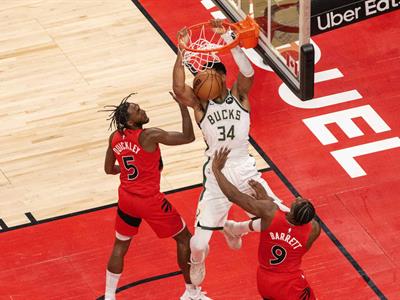 La estrella griega de los Bucks fue el máximo anotador del partido y el máximo reboteador. Además, Antetokounmpo sumó siete asistencias y un tapón. Su compañero Cole Anthony firmó una destacada actuación en Toronto tras salir desde el banquillo, con 23 puntos y siete asistencias.