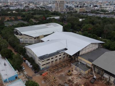 El pabellón de taekwondo se levanta sobre un enorme terreno de 4,288.94 metros cuadrados. Tendrá una zona de calentamiento y tres zonas de competencias, todo con sus respectivos tatami.