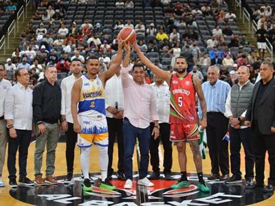 El ministro de Deportes Kelvin Cruz realizó el saque de honor previo al inicio del partido entre los clubes Mauricio Báez y Bameso, en la Arena Prudential Center, en Nueva Jersey.